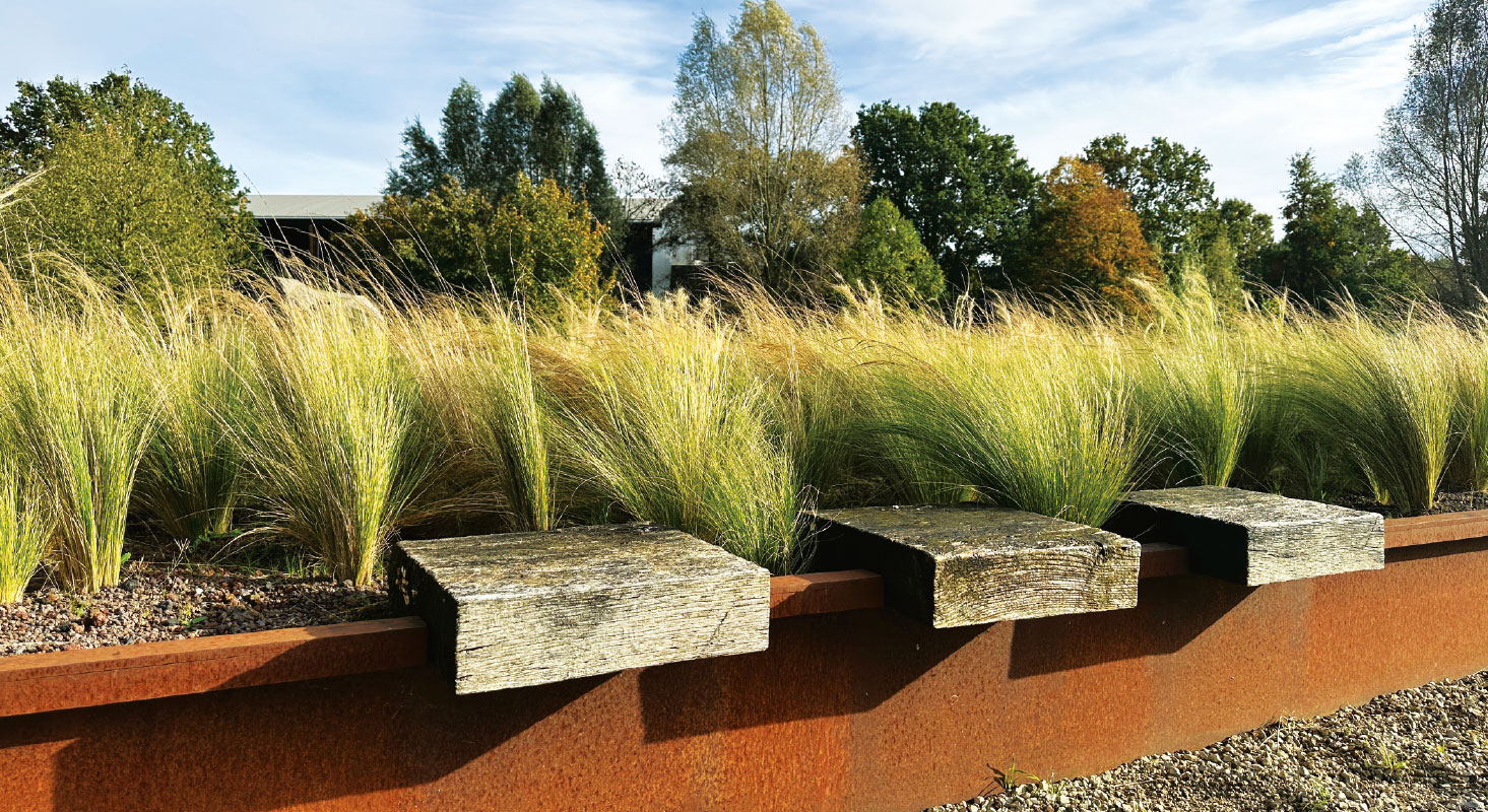 La superficie ossidata del Corten evolve nel tempo creando sfumature calde e variabili, donando ad ogni pezzo un carattere unico e perfettamente integrabile sia in paesaggi naturali che in contesti urbani moderni.